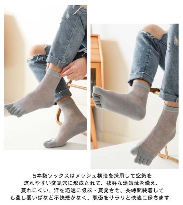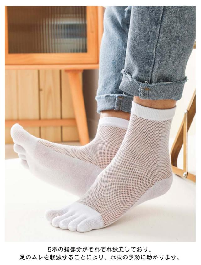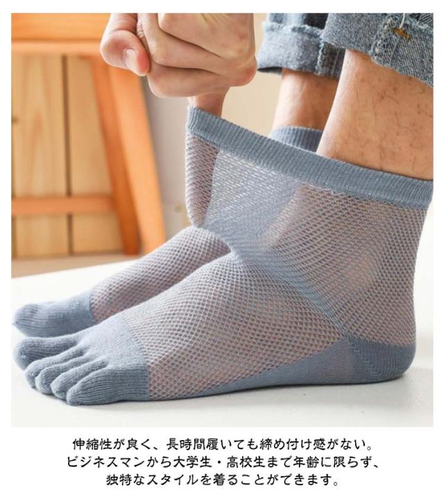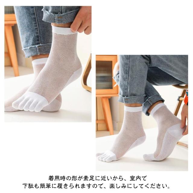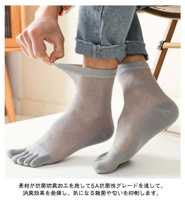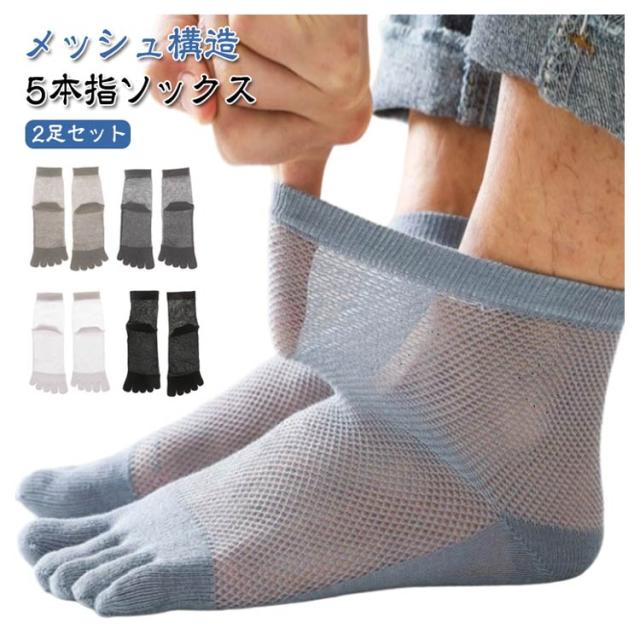 2足セット ショートソックス メンズ 靴下 五本指 メッシュ スニーカーソックス 薄手 無地 消臭 防臭 シンプル 夏用 春夏秋 快適 きれいめ おしゃれ クルーソックス メッシュ 蒸れない 五本指ソックス スポーツ 送料無料