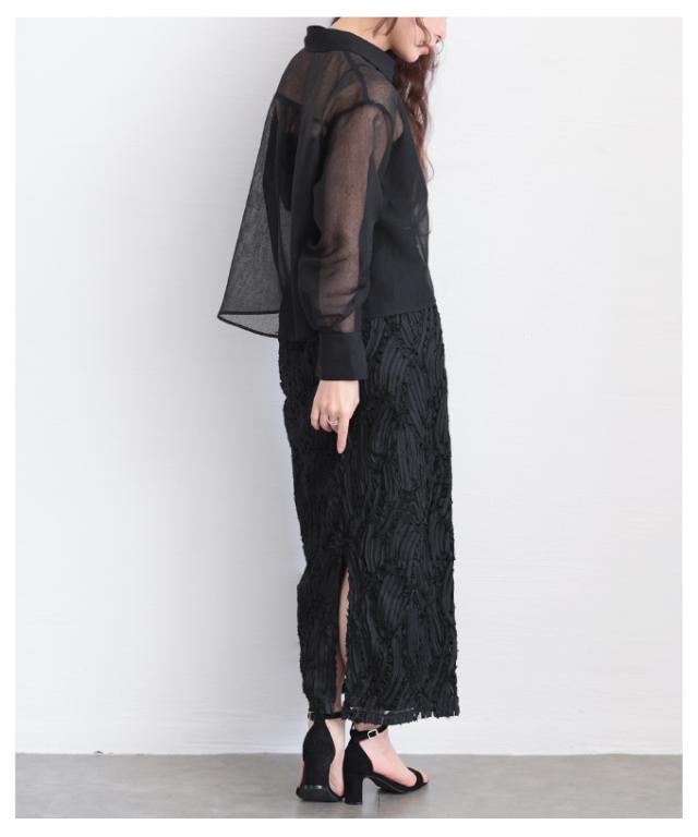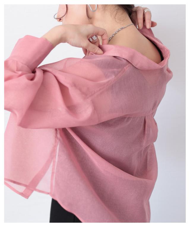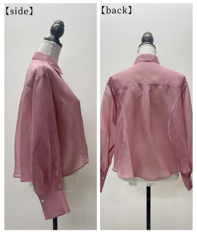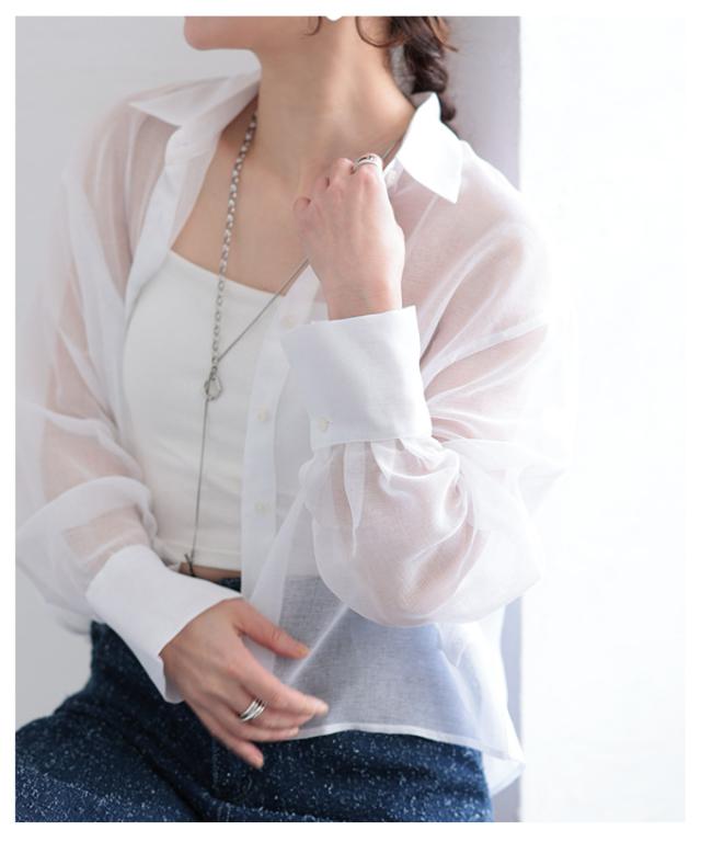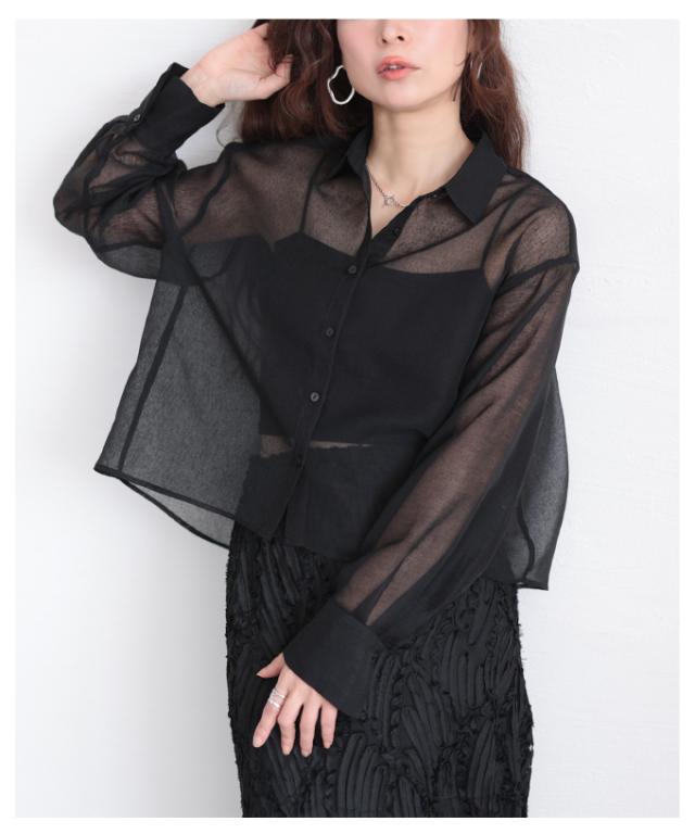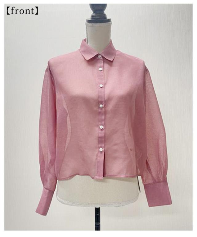 商品名: 襟付きショート丈シアーシャツブラウス