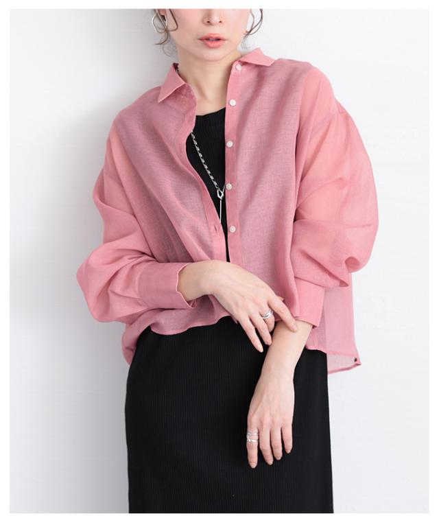 春新作 大人の抜け感を愉しむ襟付きショート丈シアーシャツブラウス レディース ファッション トップス ブラウス シャツ ピンク 大人可愛い 40代 レディースファッション 50代女性 ファッション 60代 ミセスファッション サワアラモード sawaalamode otona alwj-755110