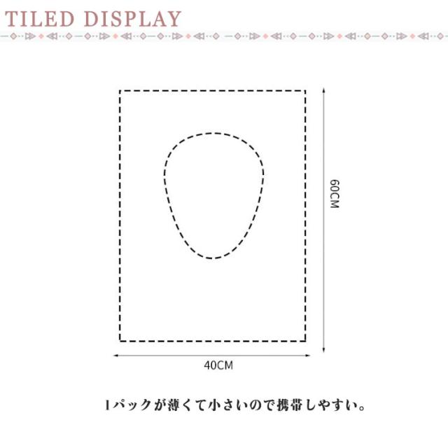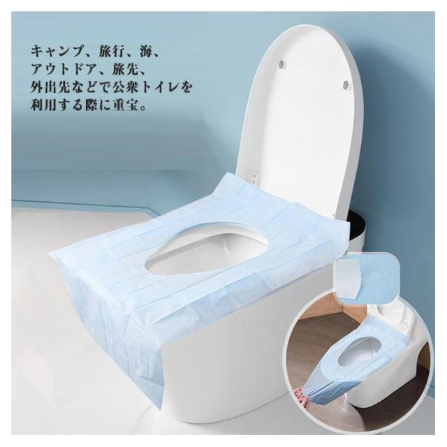 | 防水加工 使い捨て 携帯用便座シート 20枚入り 1パックが薄くて小さいので携帯しやすい。 前面と横面のシートが長く設計されているので便器をすっぽり包む形になり服や手が直接便器に触れないで衡生的。 キャンプ、旅行、海、アウトドア、旅先、外出先などで公衆トイレを利用する際に重宝。 | |