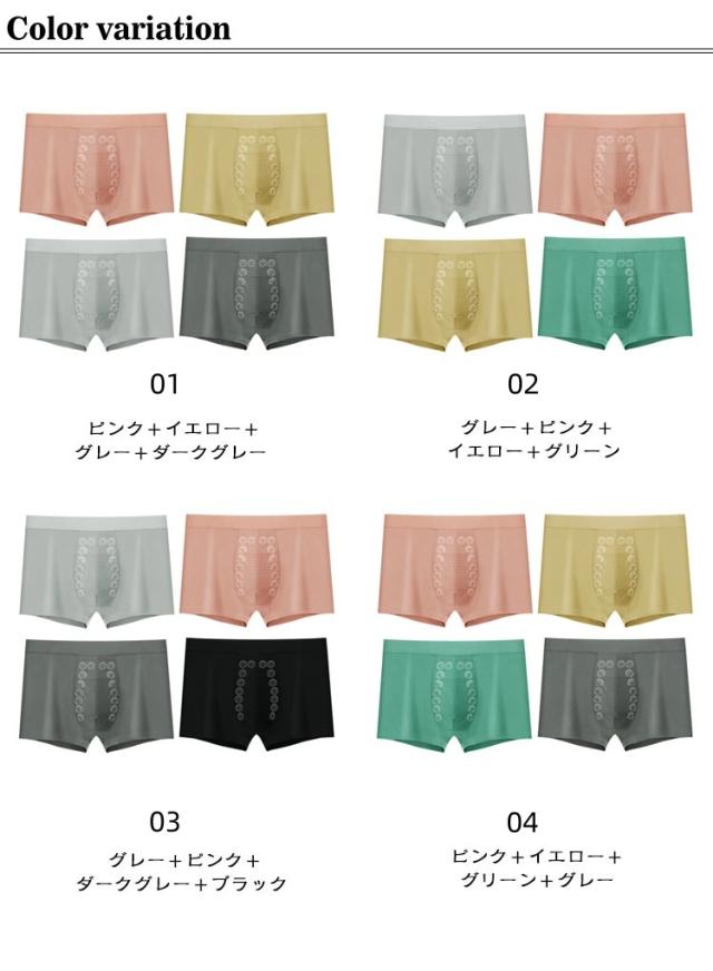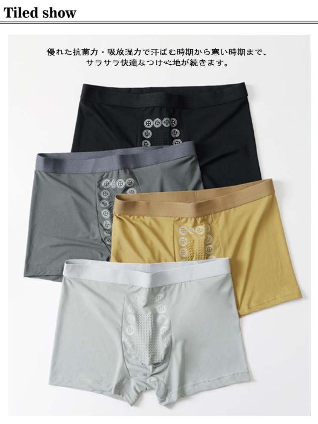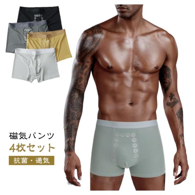 磁気パンツ 抗菌 メンズ 4枚組 マッサージ 下着 通気性 マイナスイオン効果 吸水速乾 ボクサーパンツ 蒸れない 4枚組 インナー 下着 増大パンツ 3D ボクサー パンツ 伸縮性 肌に優しい