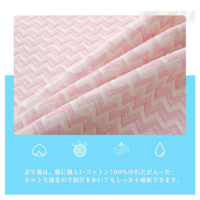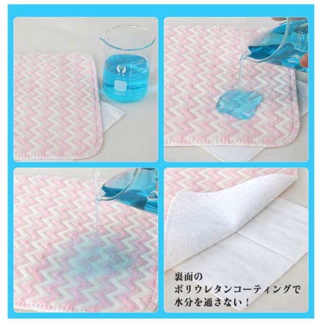 | 防水 ベビー敷きパッド 選べる4色 汗取りパッド×防水ッーツ。表面のパイル生地がしっかりと汗や水分を吸收! 裏面のポリウレタンコーティングで水分を通さない! 表生地は、肌に優しいコットン100%中わたが入ったキルト生地なので寝汗をかいてもしっかり吸収できます。 丸洗いできる。※防水機能を長持ちさせるために洗濯ネットをご使用ください。 | |