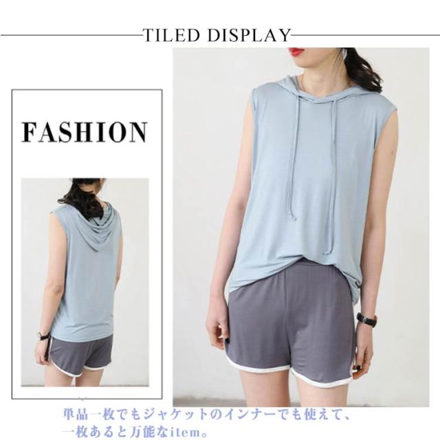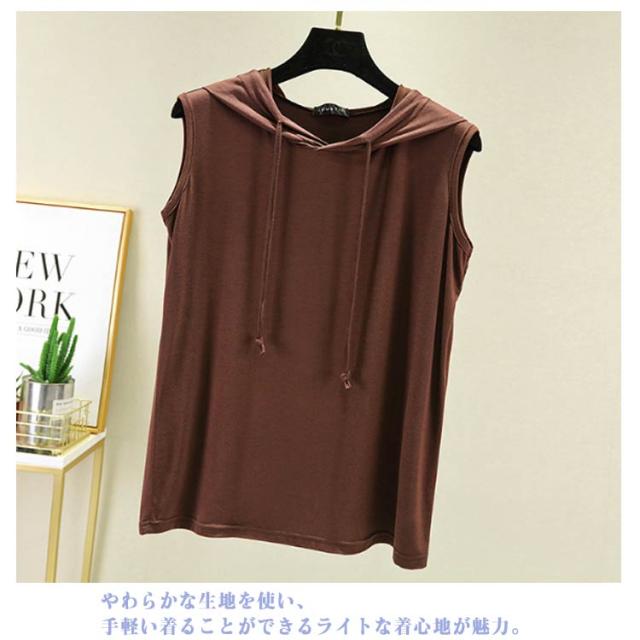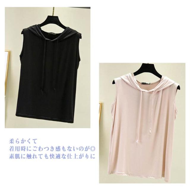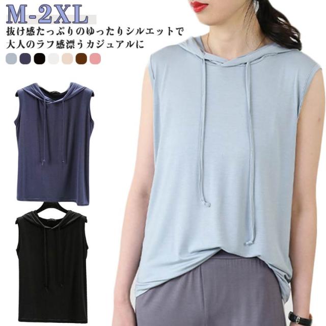 夏 無地 ベスト パーカー レディース ノースリーブ tシャツ 袖なし 春夏 フード付き プルオーバーノースリーブtシャツ トレーナー スウェット カットソー シンプル トップス 薄手 ゆったり ノースリーブ 重ね着 レイヤード お洒落