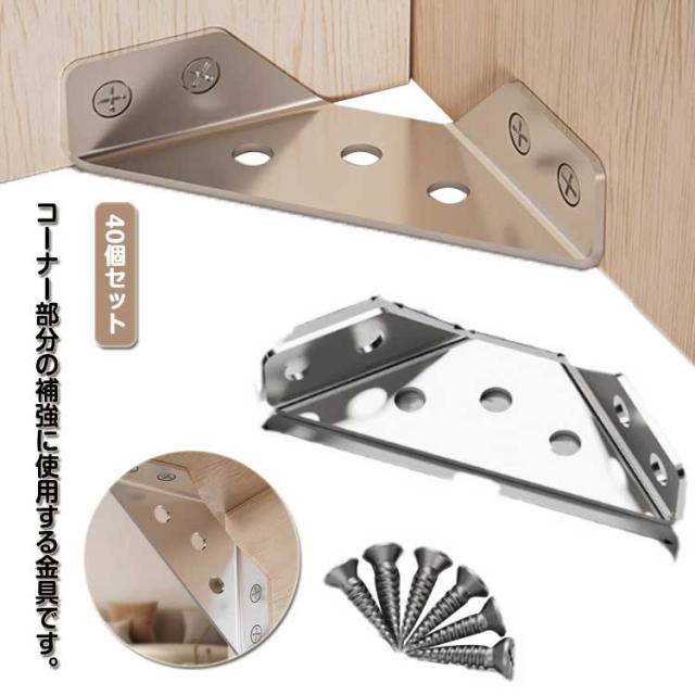 ジョイント金具 コーナー金具 ステンレス スチール棚 40個セット DIY 大工 コーナー固定金具 連結 接合 補強 固定 多目的ツール コーナー固定金具 スチールラック 収納棚