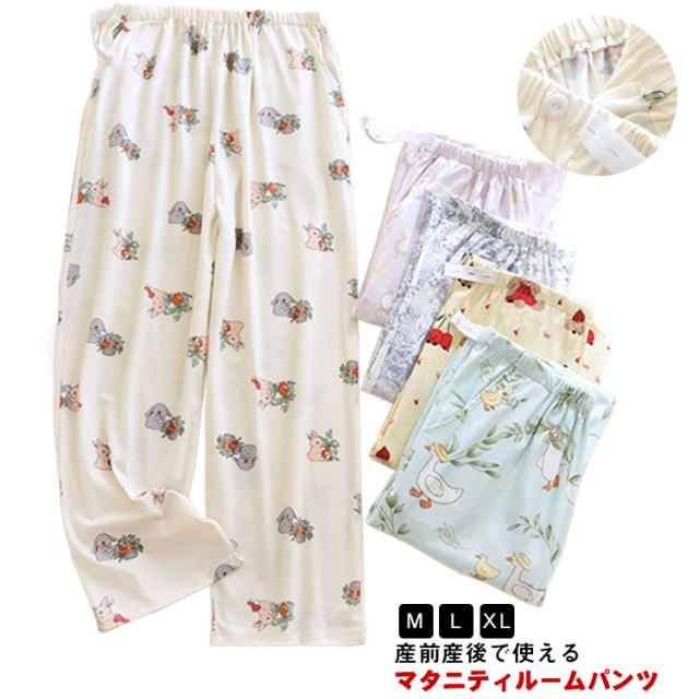 マタニティ ルームパンツ マタニティ ルームウェア レディース コットン パジャマ ポケットあり ウエスト 調節可 マタニティパンツ 産前産後兼用 マタニティウェア 部屋着 マタニティ服