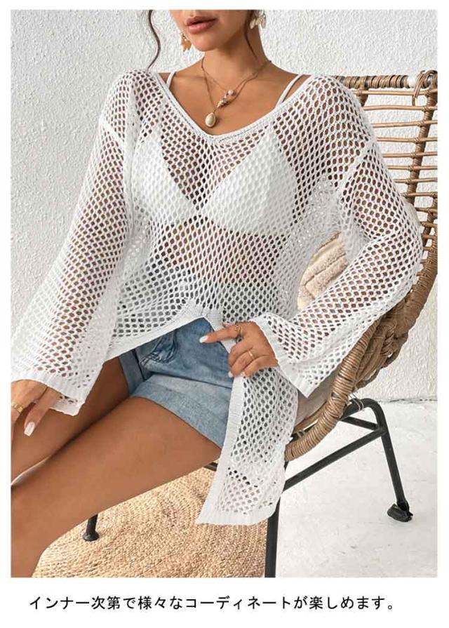 トップス 水陸両用 ラッシュガード メッシュ レディース シアー メッシュ フードなし 水着 シースルー 長袖Tシャツ Tシャツ ゆったり 体系カバー 薄手 シアー 透け感 メッシュ 無地 オーバーサイズ スイムウェア ベージュ ブラック