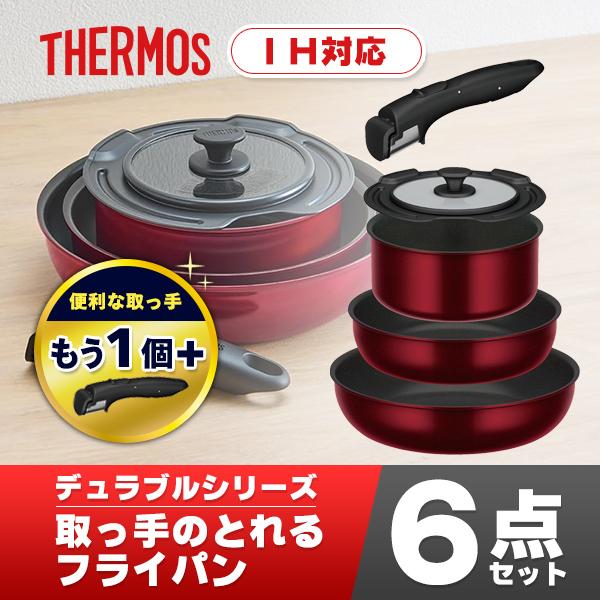 サーモス 取っ手2個つき フライパン セット 取っ手のとれるフライパン6点 KSD-5A DR KHB-001 BK