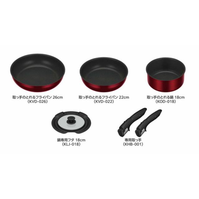 サーモス フライパンセット +専用取っ手2個つき 取っ手のとれるフライパン6点 KSD-5A DR KHB-001 BK