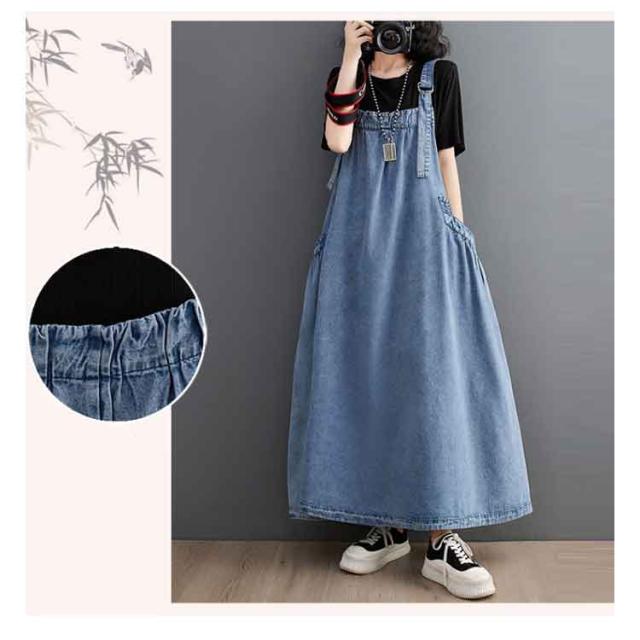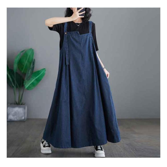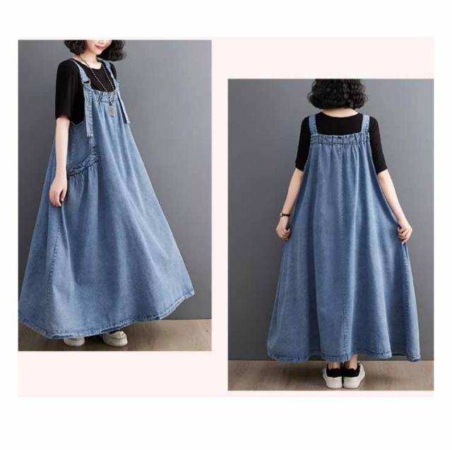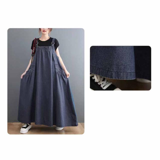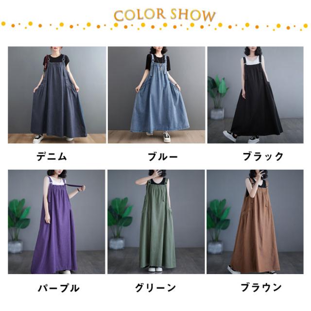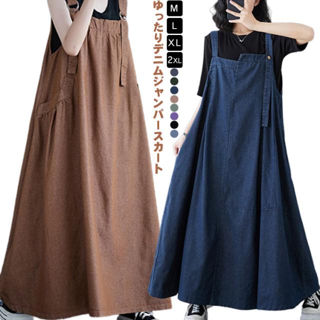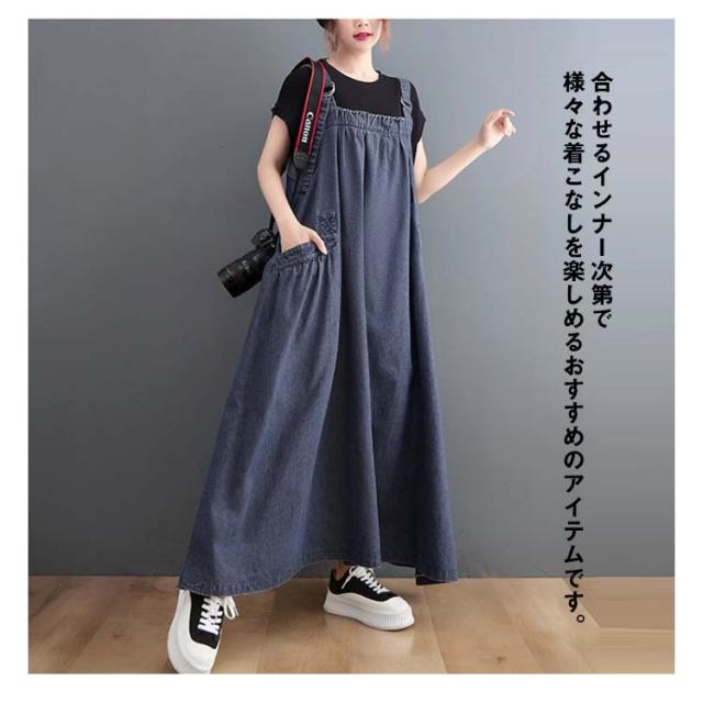 ワンピース ジャンパースカート ロングスカート ロング丈 ゆったり サロペットスカート ジャンパースカート 体系カバー ジャンパースカート ジャンスカ 春