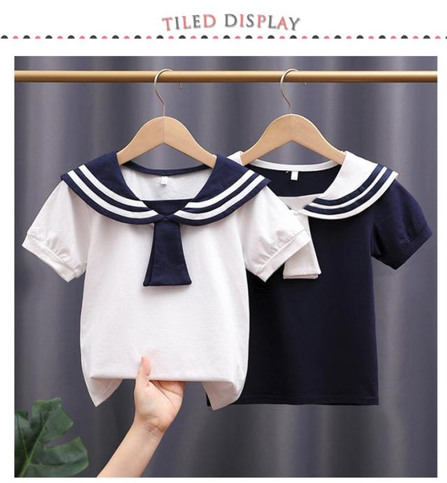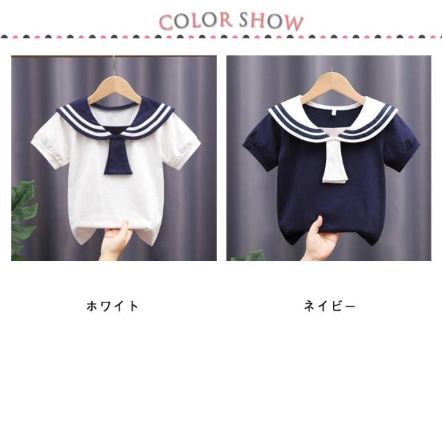 女の子 セーラー襟 お出かけ tシャツ 男の子 夏 半袖 マリン キッズ トップス セーラー襟 子供服 綿 こども 子ども 無地 ガールズ 春 かわいい シンプル おしゃれ カジュアル セーラー 可愛い 110 120 130 140 150 160cm