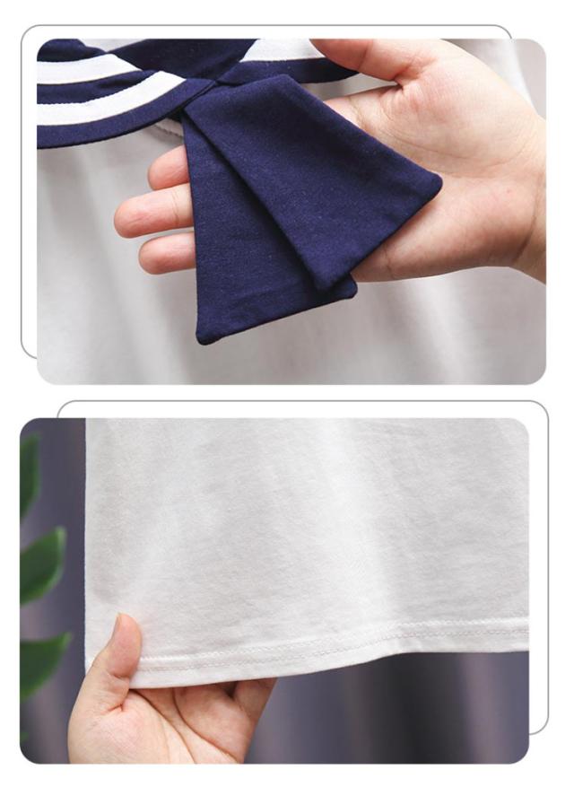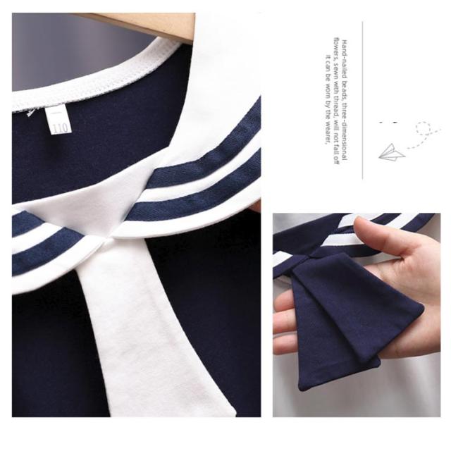| 【110〜160cm】【綿素材】 マリン風で可愛いセーラー服Tシャツ! キッズも気持ち良く着用できるよう、綿混の生地を採用 パンツもスカートもOKな、合わせるボトムスを選ばない着まわし力の高いアイテム | |