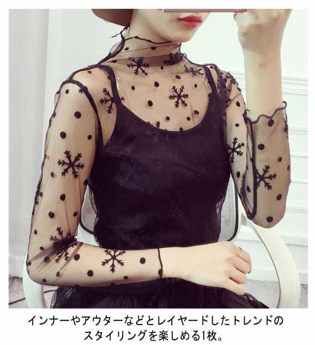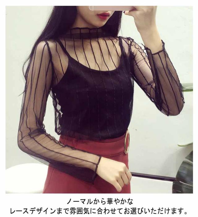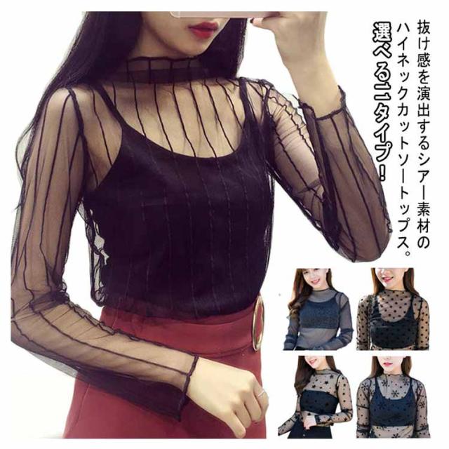 シアー 透け感 紫外線対策 レディース UVカット 冷房対策 日よけ防止 夏 涼しい シアー レースインナー 重ね着 首元までお守る レイヤード Tシャツ カットソー チュールトップス ハイネック インナー