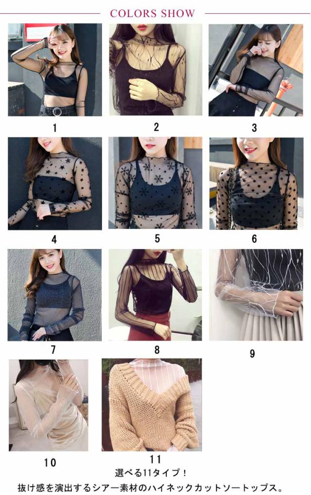 | 選べる11タイプ!抜け感を演出するシアー素材のハイネックカットソートップス。 程よく上品な透け感が女性らしい印象を与えてくれます。 ノーマルから華やかなレースデザインまで雰囲気に合わせてお選びいただけます。 インナーやアウターなどとレイヤードしたトレンドのスタイリングを楽しめる1枚。 パンツやスカート、ワンピにも合うなデザインで、いろんなコーデをお楽しみいただけます。 | |