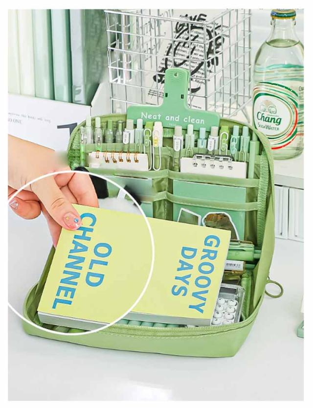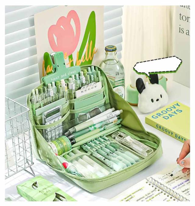 | 【立つペンケース】【たくさんいる大容量】【7color】 文房具を立たせて収納するので、中身が一覧しやすく、机上で省スペースに使えます。 ぐるっと大きく開いて、いるものが見つけやすい。 小さな小物も見失わないメッシュポケット付き。 ペン、電卓、文具などのワークツールをまとめて収容して持ち運べるので、準備・片付けがしやすくなります。 女性には化粧ポーチとしても有効活用可能です。 | |