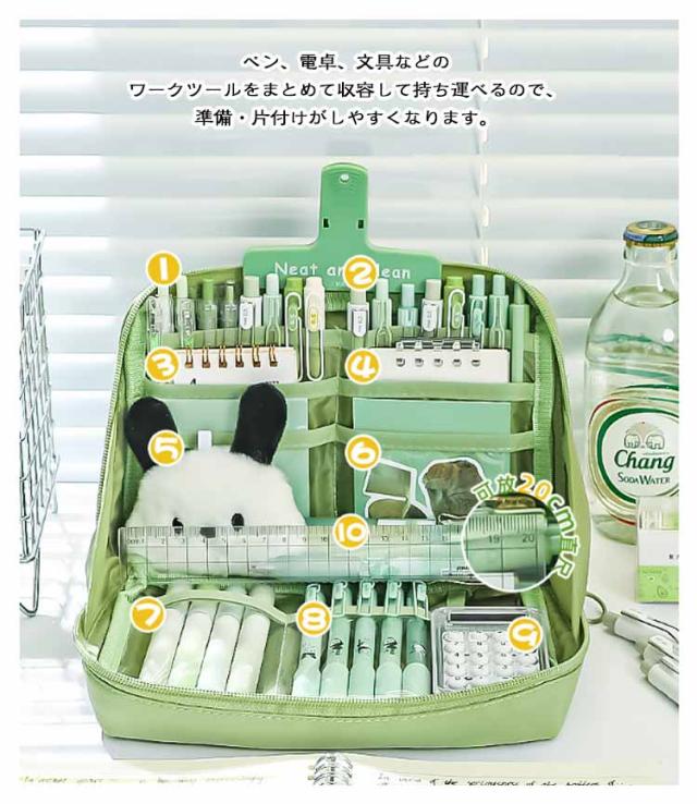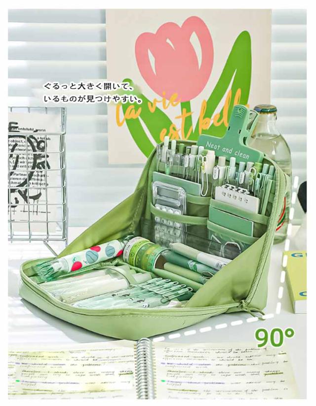 | 【立つペンケース】【たくさんいる大容量】【7color】 文房具を立たせて収納するので、中身が一覧しやすく、机上で省スペースに使えます。 ぐるっと大きく開いて、いるものが見つけやすい。 小さな小物も見失わないメッシュポケット付き。 ペン、電卓、文具などのワークツールをまとめて収容して持ち運べるので、準備・片付けがしやすくなります。 女性には化粧ポーチとしても有効活用可能です。 | |