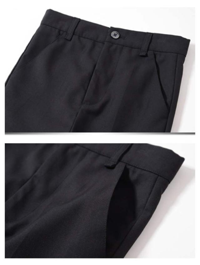 | 1枚あるととっても便利な男の子スーツスラックス! 着心地にこだわった立体裁断、やや細身のストレートタイプでどんなシーンもスタイリッシュにきまります。 薄すぎない生地感で、オールシーズン対応◎ シャツのカラー、デザインを変えるだけで、フォーマルからカジュアル風、雰囲気も変えることができるので、入学式、結婚式、ピアノ発表会、七五三、お祝い、パーティー、ウェディング リング ボーイ衣装、合唱コンクール 、ダンス衣装、など様々なシーンに対応可能◎ | |