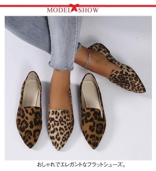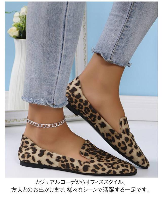 浅めのカット レオパード柄 レディース スリッポン 春靴 ポインテッドトゥ ぺたんこ ポインテッドトゥ フラットシューズ 大きサイズ 歩きやすい 軽量