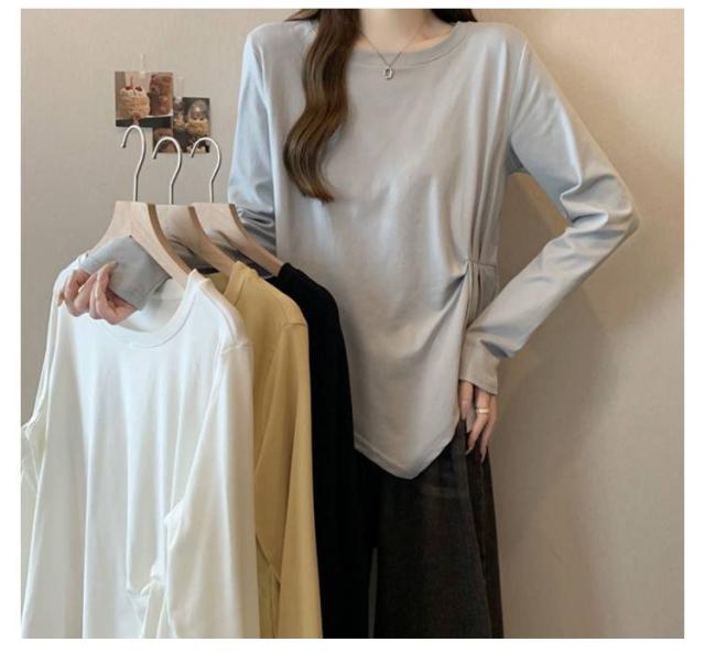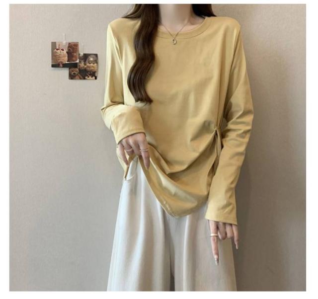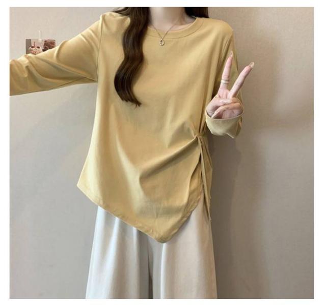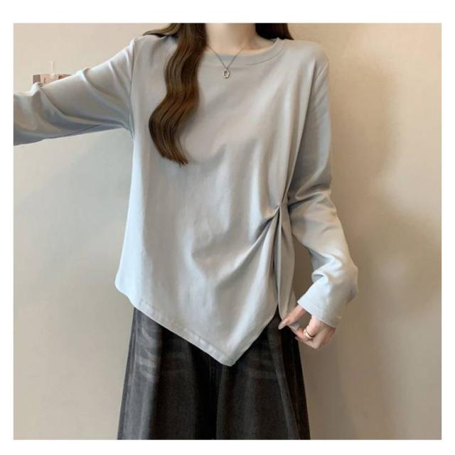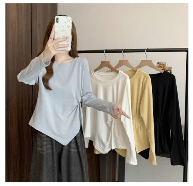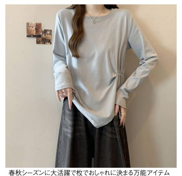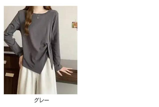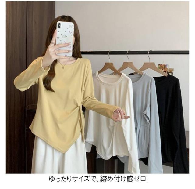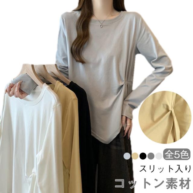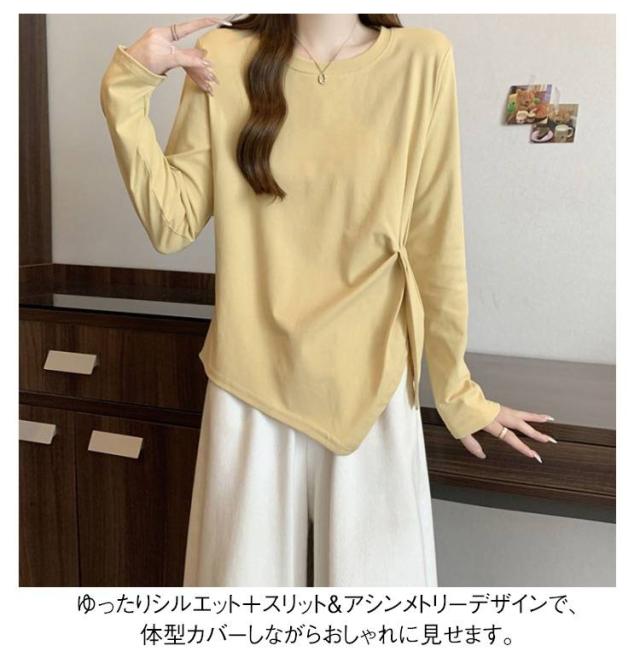 レディース 大きサイズ 長袖tシャツ tシャツ スリット入り トップス クルーネック ゆったり シンプル スリット入り 春 夏 秋