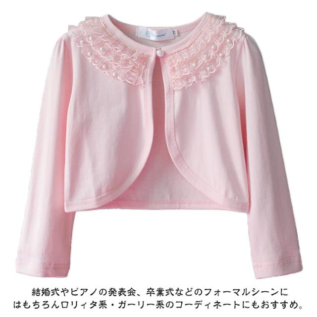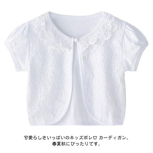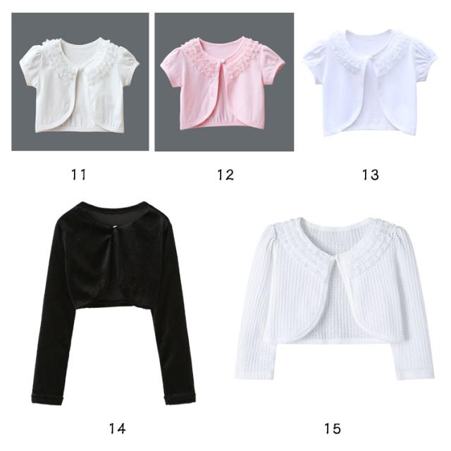 | 100-180cm!ドレスと相性バッチリ!清楚なレースボレロが登場! 清楚なレースで仕上げられているのでとても軽く、小さなお子様でも気軽にご着用頂けます! ドレスに一枚合わせるだけで全体の雰囲気もグレードアップします。 キッズスーツやフォーマルワンピースと合わせて卒園式や入学式に、夏の冷房対策用もお勧めます。 可愛らしさいっぱいのキッズボレロ カーディガン、春夏秋にぴったりです。 結婚式やピアノの発表会、卒業式などのフォーマルシーンにはもちろんロリィタ系・ガーリー系のコーディネートにもおすすめ。 | |