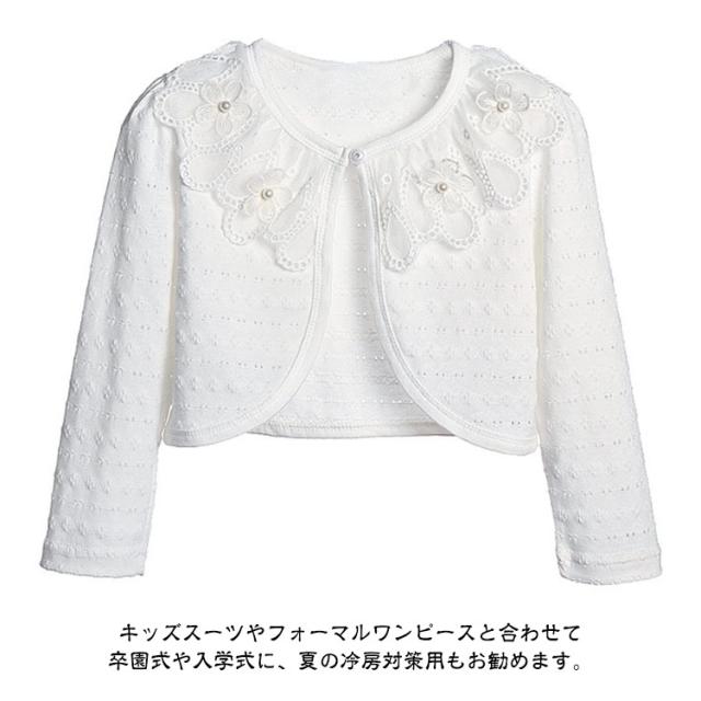 春秋 ボレロ レース キッズ 結婚式 女の子 ボレロ 衣装 白 キッズボレロ レースボレロ キッズ カーディガン 子供用ケープ 長袖 ショール フォーマル ジャケット 女児 羽織 入園式 ベビー 入学式 七五三 ピアノ発表会 披露宴 パーティー 綿 送料無料