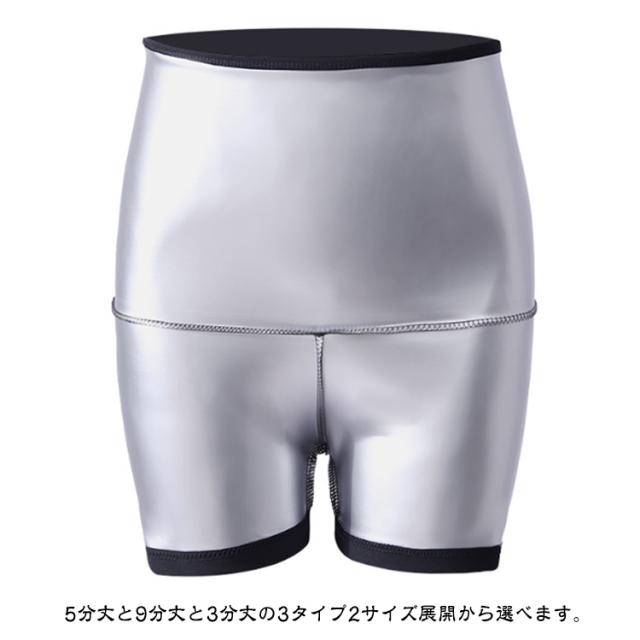 | オシャレなサウナスーツ。ダイエットや代謝UPに最適♪運動効率UPで発汗促進! 軽い運動しながら、大量に発汗して、お腹周りの脂肪を燃焼します。 発汗作用で、ポッコリお腹、太もものダイエットだけでなく、新陳代謝を高めることで美肌効果も期待できます。 ジョギング、ウォーキング、ヨガなど、フィットネスとスポーツに活躍できます。 5分丈と9分丈と3分丈の3タイプ2サイズ展開から選べます。 | |