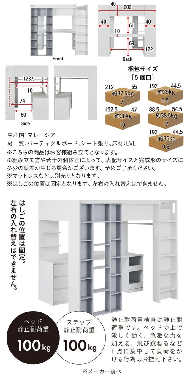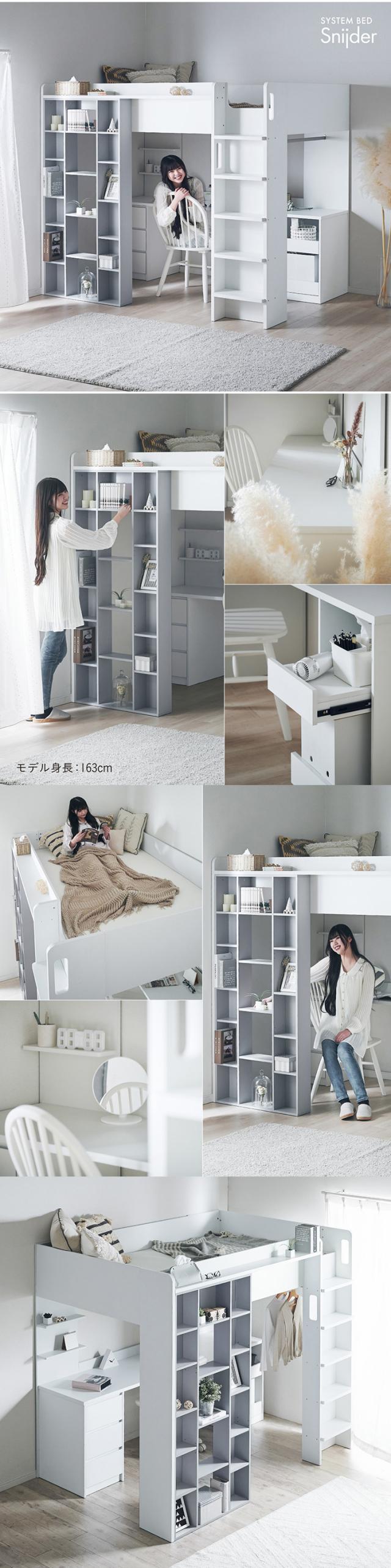 ロフトベッド システムベッド セミダブルサイズ デスク チェスト シェルフ Snijder(スナイデル) ロフトベット システムベット すのこ おしゃれ システムデスク 学習デスク 勉強机 収納棚 3段 チェスト