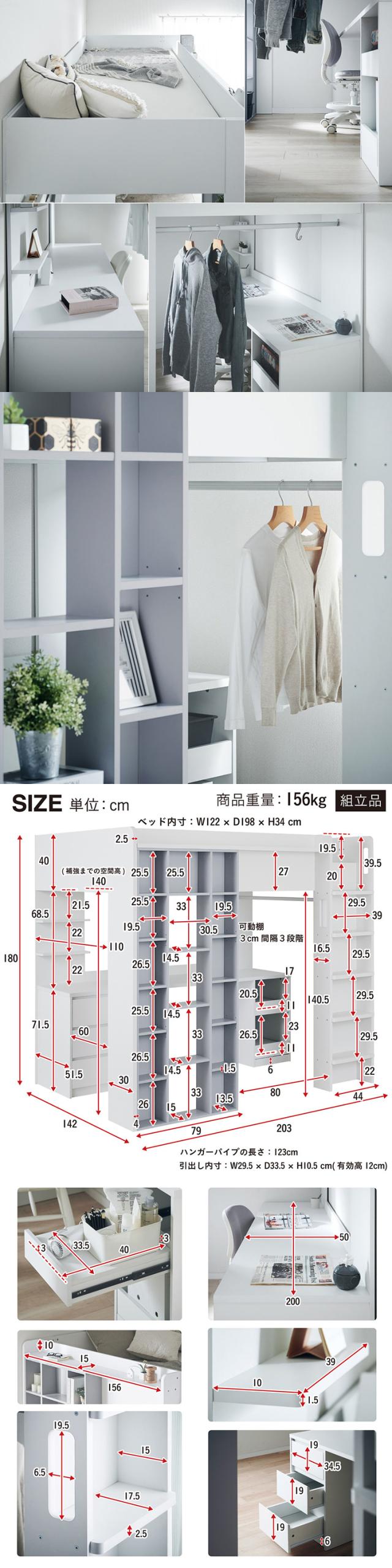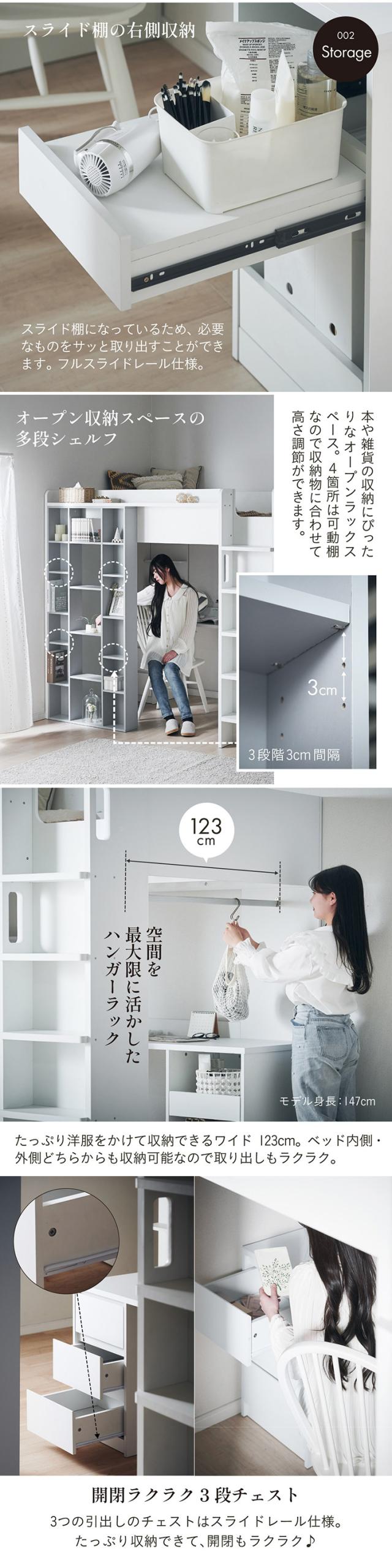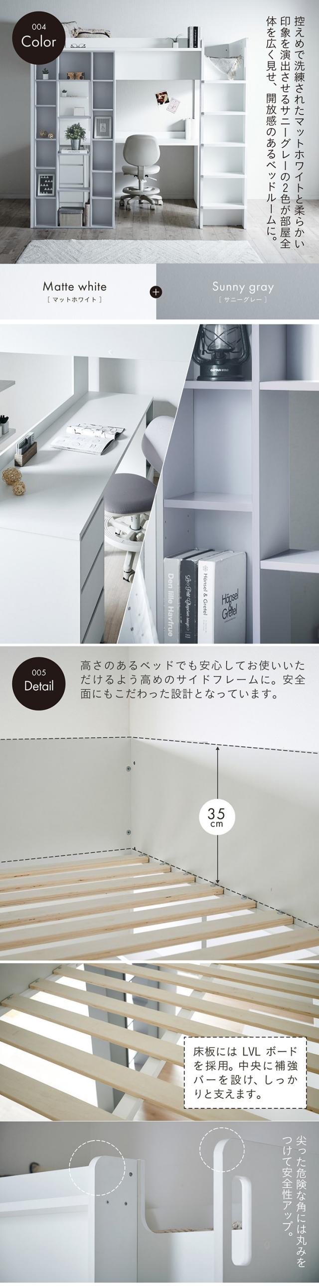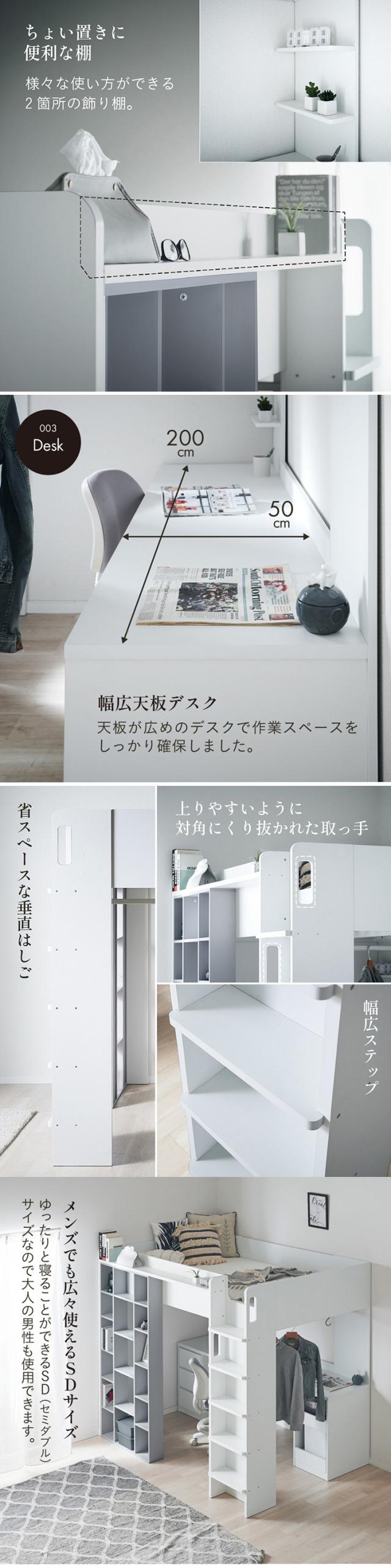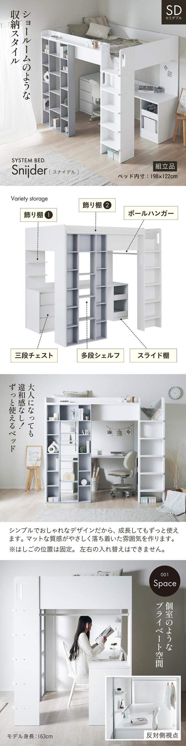 ロフトベッド システムベッド セミダブルサイズ デスク チェスト シェルフ Snijder(スナイデル) ロフトベット システムベット すのこ おしゃれ システムデスク 学習デスク 勉強机 収納棚 3段 チェスト