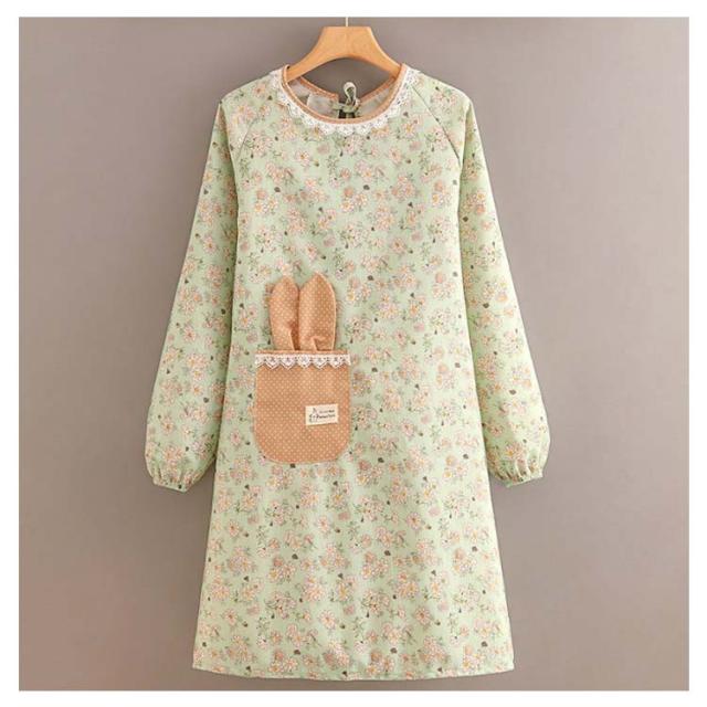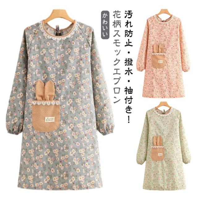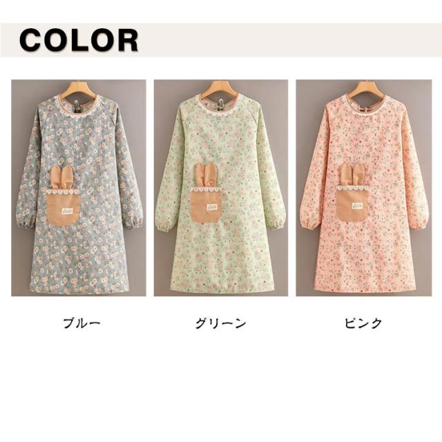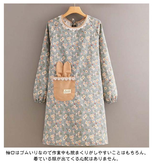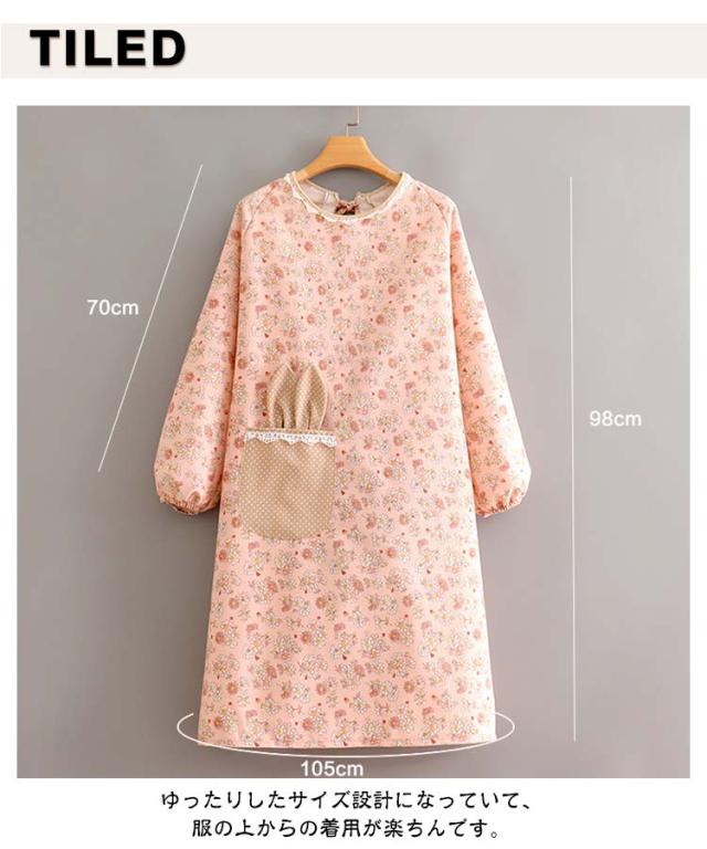 ロング エプロン かっぽう着 かわいい 送料無料 おしゃれ 幼稚園 花柄 長袖 袖付き 保育士 ワンピース 後ろリボン 撥水加工 介護士 給食 看護師 家事 大人用 かっぽうぎ 保育士 学校 送料無料 料理教室 美容師 ギフト