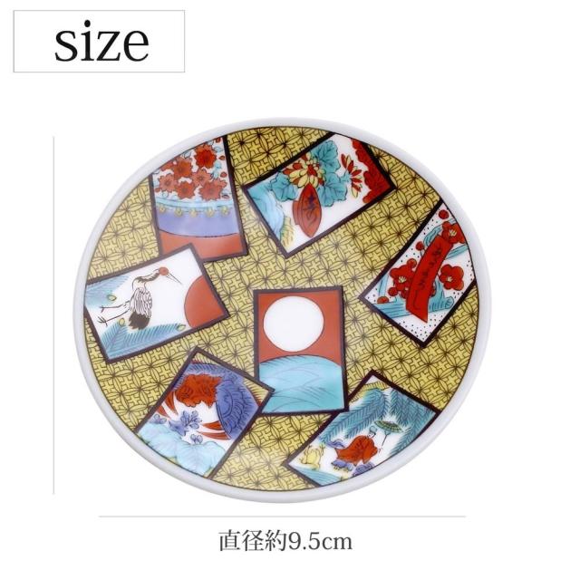 吉祥/KISSYO 日本製 九谷焼 九谷五彩 陶器 陶磁器 磁気 お皿/皿/小皿/縁起小皿/豆皿 食器 和食器 9.5cm 花かるた 華やか 鮮やか クリックポスト便対応