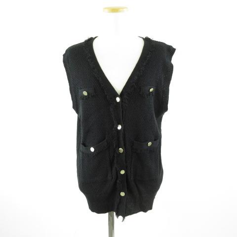 【中古】ニットベスト フリンジ 黒 L *T735 レディース