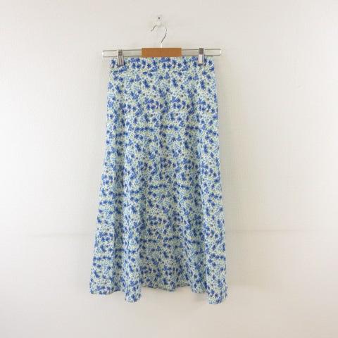 【中古】未使用品 URGE スカート フレア ミディ丈 花柄 青 M *T819 レディース