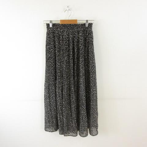 【中古】スカート プリーツ ミモレ丈 総柄 黒 L *T729 レディース