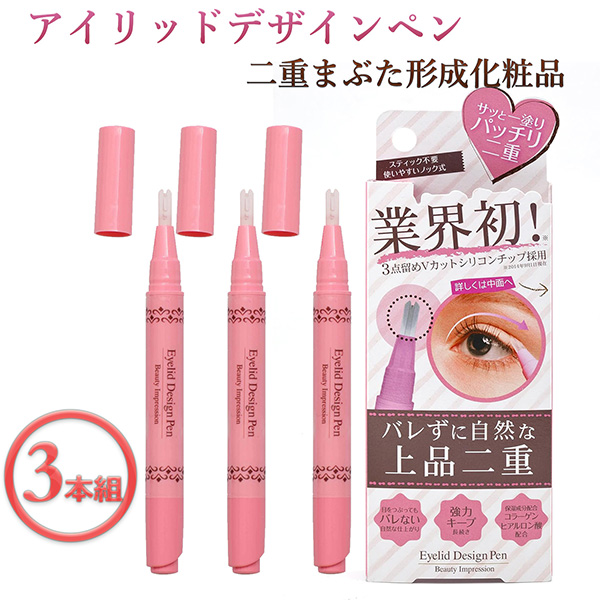 送料無料 二重まぶた形成化粧品 アイリッドデザインペン 3本組 ‐ 二重 ふたえ アイメイク 二重ライン コラーゲン ヒアルロン酸 ノック式