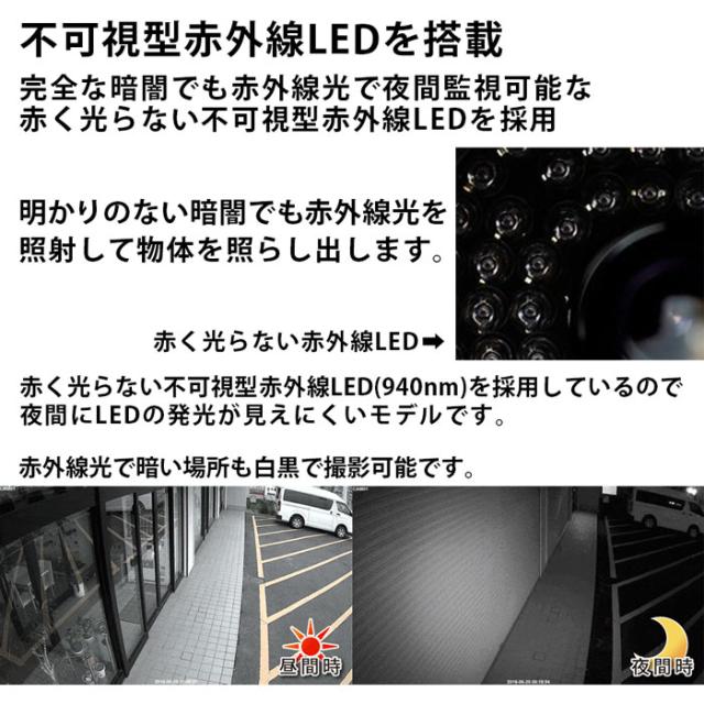 カメラボディ形状の赤外線投光機で、940nmの不可視型LEDを採用しています。