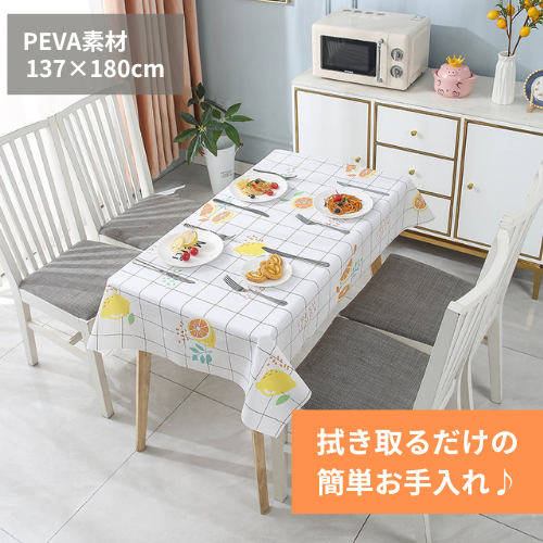 テーブルクロス お手入れ簡単 フルーツデザイン レモン ホワイト 格子 撥水加工 撥油 薄手 PEVA素材 インテリア 食卓 パーティー 防水 テーブルマット キッチン用品 オシャレ 雑貨 サイズ調整可能 フレッシュ