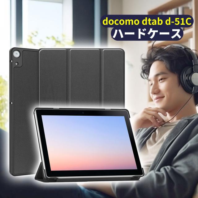 docomo dtab d-51C 10.1インチ タブレット カバー ハードケース 保護カバー ケース カバー 全面保護 二つ折りスタンド 擦り傷防止 耐汚れ 軽量 シンプル オシャレ ブラック