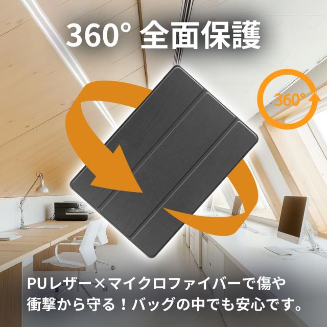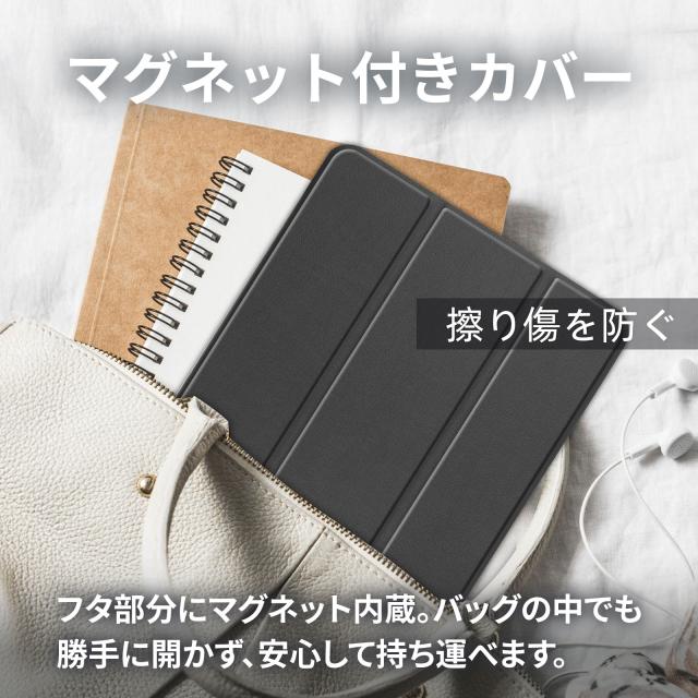 [ 使いやすいシンプルケース ] 【 優れた5つの ポイント 】 (1) 360°全面保護で安心! (2) 快適なスタンド機能付き (3) 汚れに強く、お手入れ簡単 (4) 薄型&軽量で持ち運びラクラク (5) ペマグネット付きカバー 【 360°全面保護で安心 】 PUレザーとマイクロファイバーの組み合わせで、タブレットを傷や衝撃から守ります。 バッグの中でも安心して持ち運び可能です。 【 快適なスタンド機能付き 】 人間工学に基づいた角度設計で、動画視聴やタイピングがスムーズに。 長時間の使用でも快適な姿勢を保てます。 【 薄型&軽量で持ち運びラクラク 】 スリムで軽いデザインだから、バッグの中でもかさばらず、外出時もスマートに持ち運べます。 【 汚れに強く、お手入れ簡単 】 汚れがつきにくい素材を採用。サッと拭くだけで、いつでも清潔に保てます。 【 マグネット付きカバー 】 フタ部分にマグネット内蔵。バッグの中でも勝手に開かず、安心して持ち運べます。 |