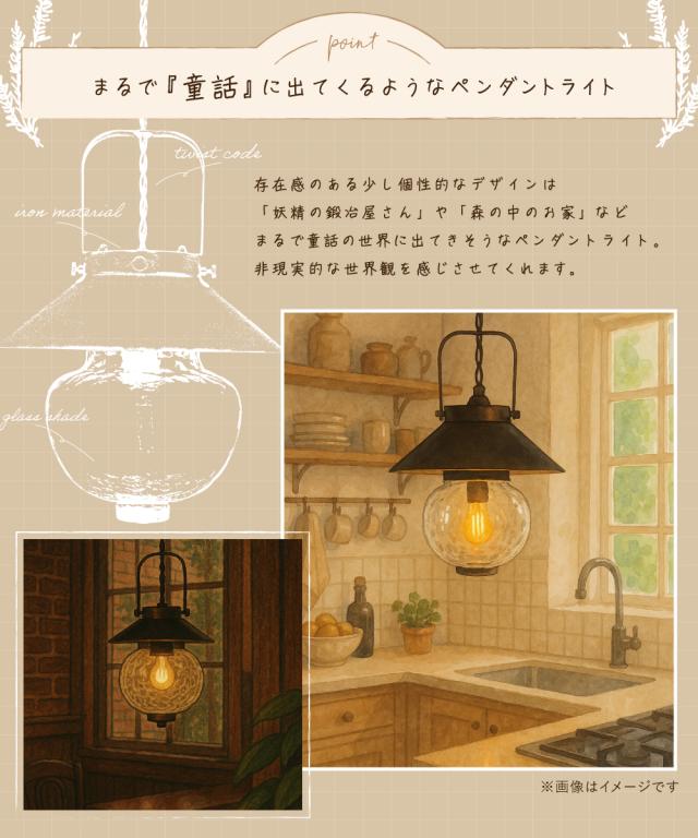 【Ampoule】 ペンダントライト 照明 おしゃれ 1灯 E17 ガラス アイアン スチール 玄関 ダイニング 廊下 レトロ アンティーク モダン インダストリアル 北欧 インテリア ブラウン ブロンズ ブラック 照明器具 天井照明 LED blacksmith Pendant light ブラックスミス