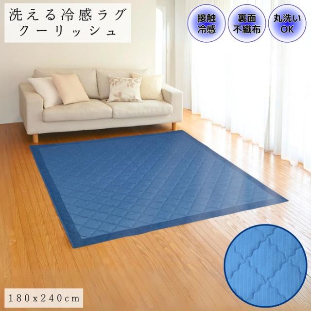 冷感ラグ ひんやりクール クーリッシュ ブルー色 180x240cm 3畳用 ご家庭で丸洗いOK ふっくらキルティングラグ