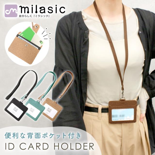 カードホルダー 横型 首掛け ネックストラップ 背面ポケット付き idカードホルダー パスケース カードケース 高級感 レディース メンズ シンプル おしゃれ かわいい ブランド 首かけ 社員証 定期入れ idケース ic 薄型 ネームホルダー id ホルダー 落ちない 両面