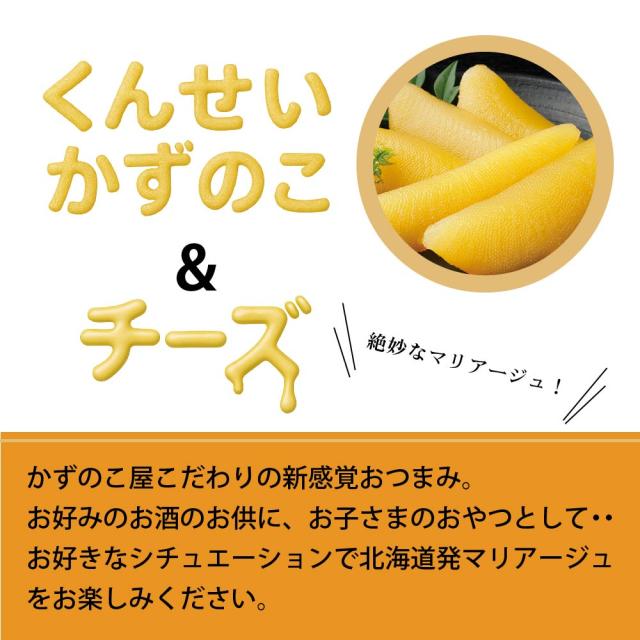 | 商品説明 | くんせいかずのことチーズを組み合わせた、かずのこ屋こだわりの新感覚おつまみ。お好みのお酒のお供に、お子さまのおやつとして・・お好きなシチュエーションでこの北海道発マリアージュをお楽しみください。 |