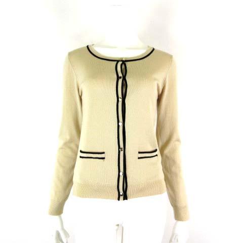 【中古】トップバリュ TOPVALU カーディガン ニット バイカラー ストレッチ 長袖 M ベージュ 黒 ゴールド 美品