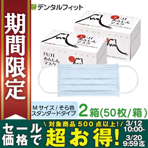 【★10%OFF 3/20 9:59迄】FUJIあんしんマスク / そら色 / M / スタンダード / 2箱セット(50枚/箱)【90×175mm】【マスク 不織布 不織布マスク】【マスク 花粉】【キャンセル・返品・交換不可】マスク ホワイト ピンク ブルー