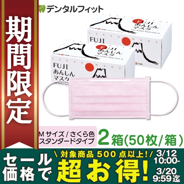 【★10%OFF 3/20 9:59迄】FUJIあんしんマスク / さくら色 / M / スタンダード / 2箱セット(50枚/箱)【90×175mm】【マスク 不織布 不織布マスク】【マスク 花粉】【キャンセル・返品・交換不可】マスク ホワイト ピンク ブルー