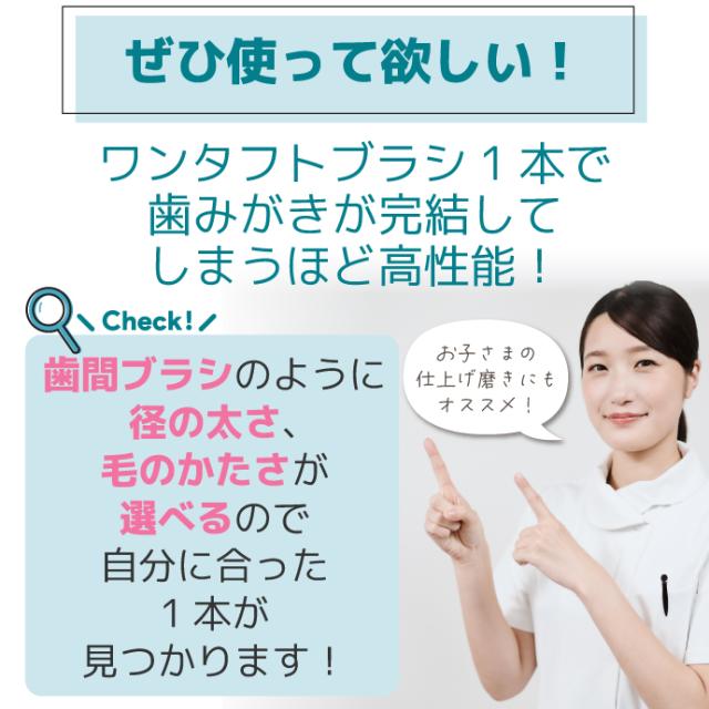 ヘッドの大きさと毛のやわらかさを選べるので、歯肉・歯間の状態や用途に合わせてお選びいただけます。