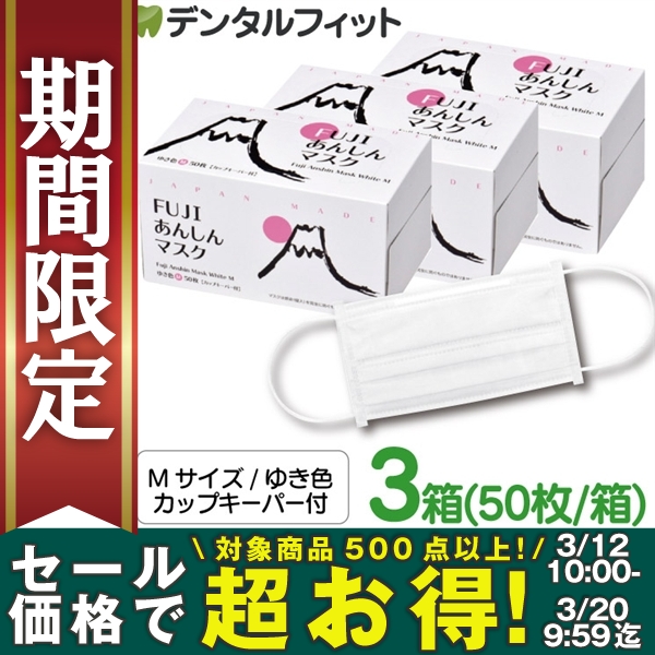 【★10%OFF 3/20 9:59迄】マスク 口元ワイヤー 日本製 FUJIあんしんマスク ゆき色 Mサイズ カップキーパー付 3箱セット(50枚入/箱) 【4層構造 不織布マスク】【返品・交換不可】