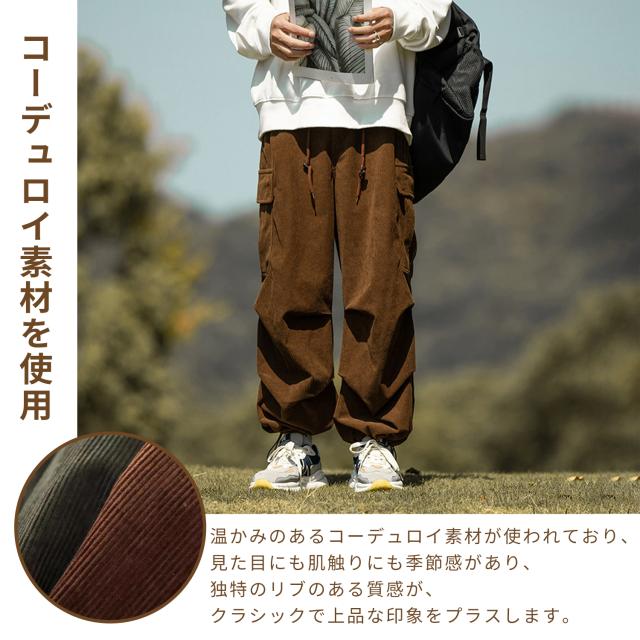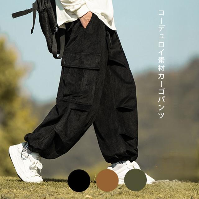 ロングパンツメンズコーデュロイパンツ カーゴパンツ オーバーサイズ ワイドパンツガウチョパンツスポーツパンツイージーパンツアウトドア