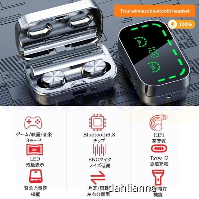 ワイヤレスイヤホン Bluetooth5.3 残電表示 ブルートゥース 高音質 Hi-Fi 片耳 両耳 超軽量 モバイルバッテリー ENCノイズキャンセリング 左右分離