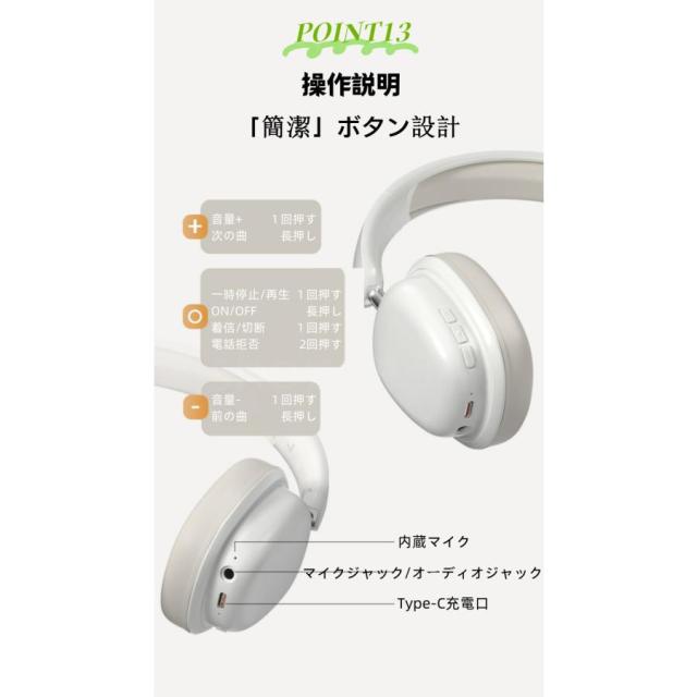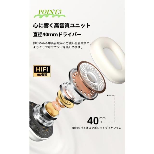 ワイヤレスヘッドホン Bluetooth5.3 クリア通話 HiFi高音質 ステレオサウンド 日本語説明書 即納