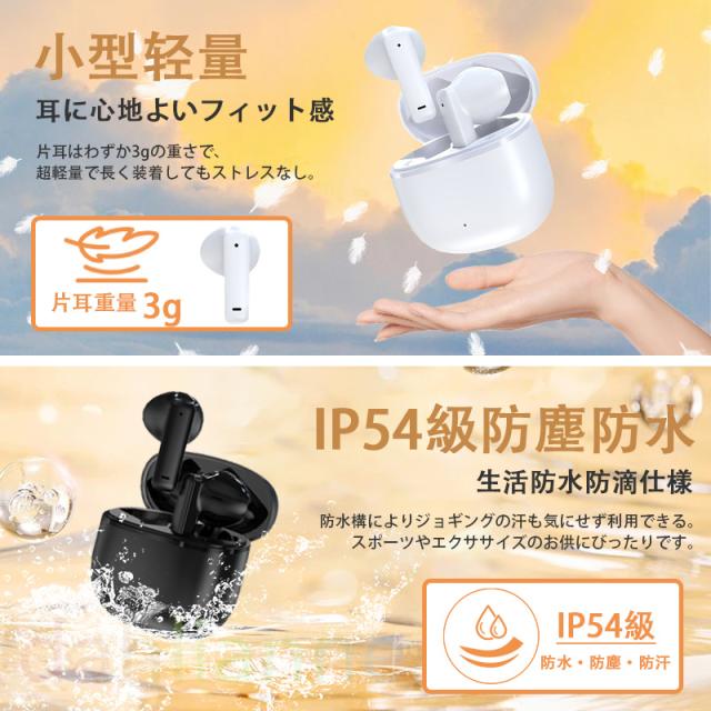 ワイヤレスイヤホン Bluetooth5.3 イヤホン 3g超軽量 低遅延 臨場感 コンパクト 高音質 重低音 左右分離 自動ペアリング デュアルバッテリー 最新型